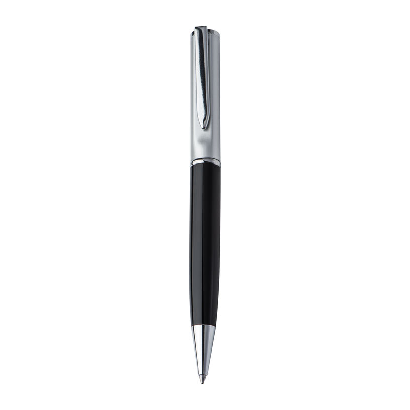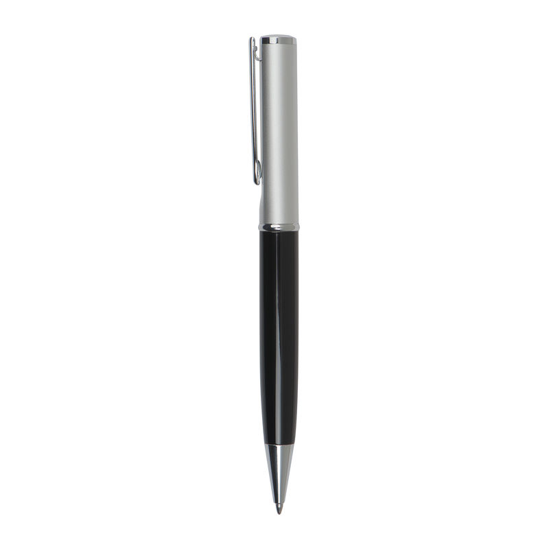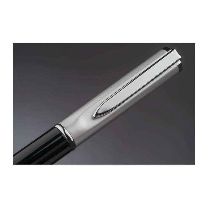 Κομψό μεταλλικό στυλό με ασημένιο καπάκι και με ανταλλακτικό με μελάνι μπλε χρώματος.