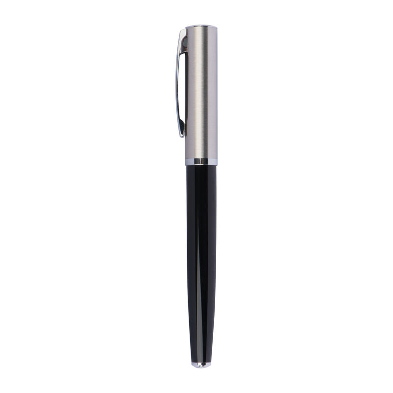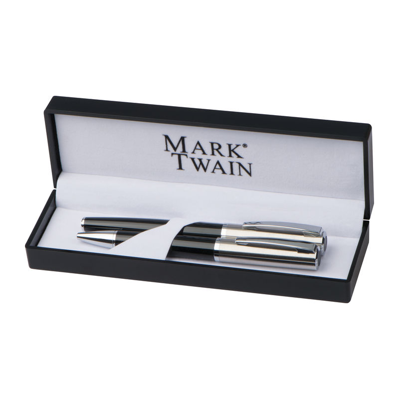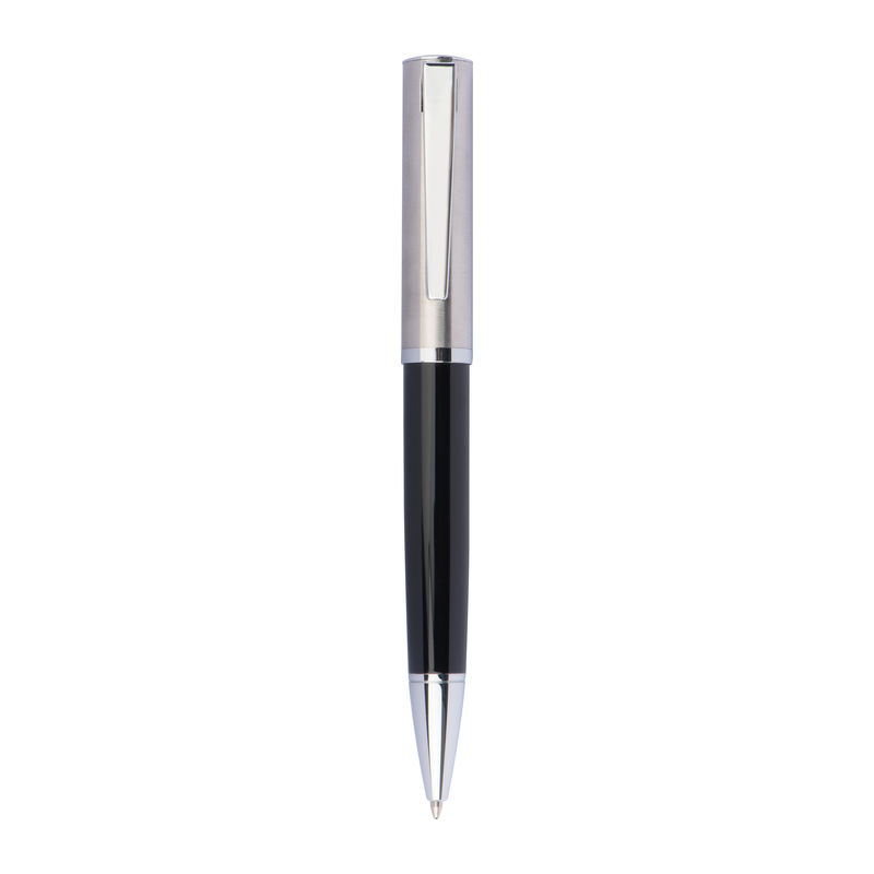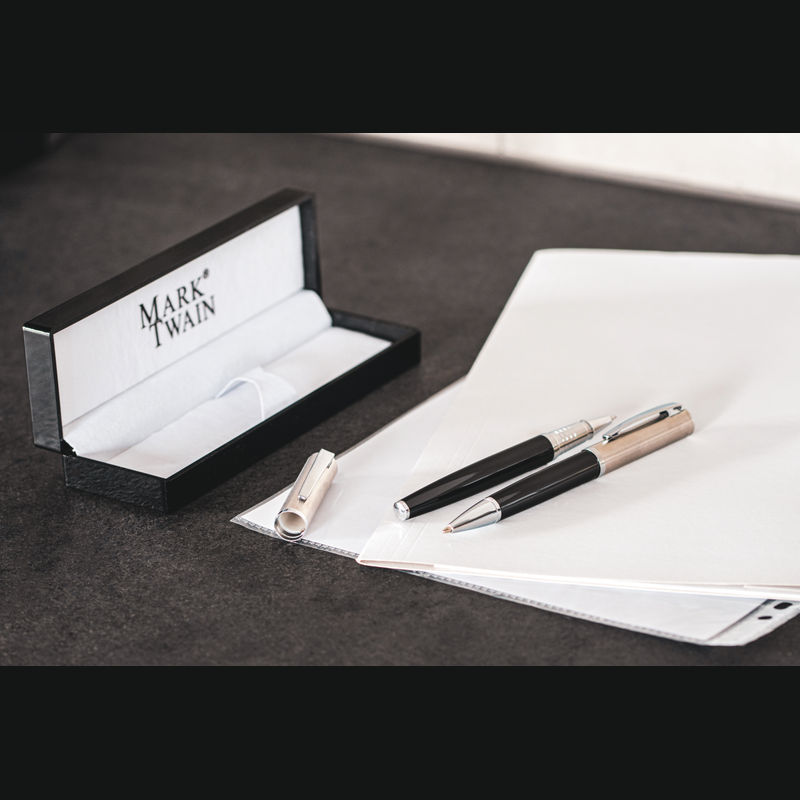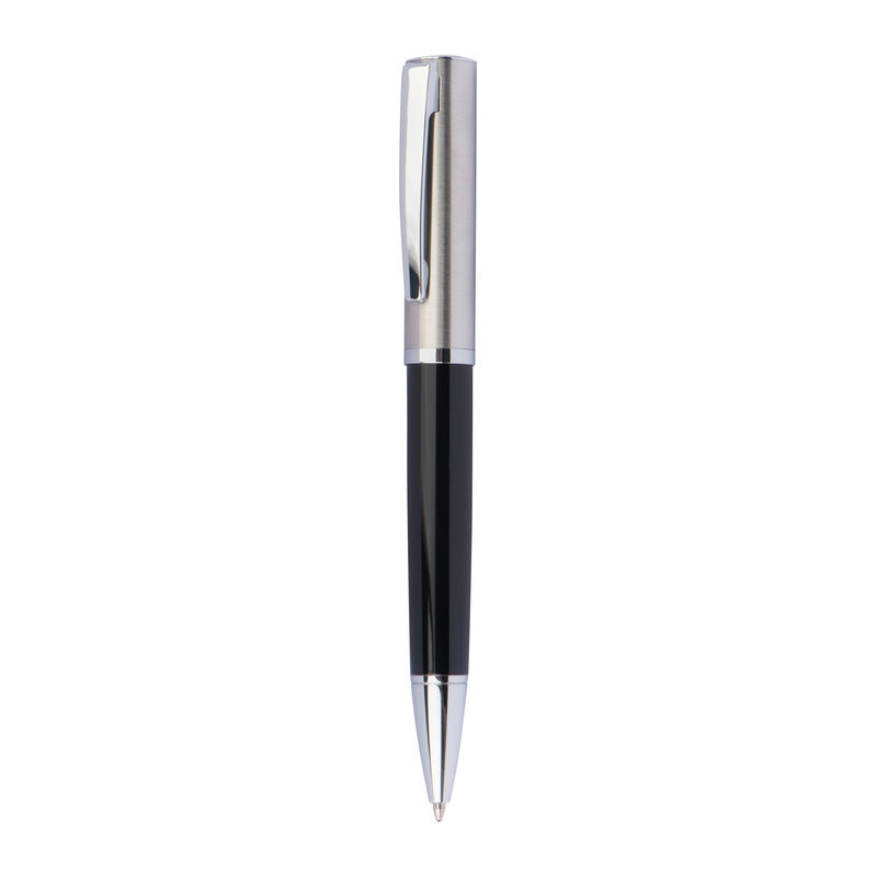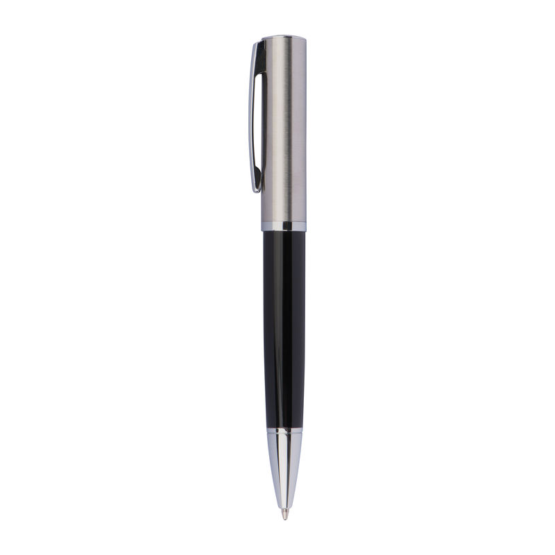 Σετ γραφής υψηλής ποιότητας από μέταλλο, που περιλαμβάνει ένα στυλό με μπίλια με μπλε μελάνι και ένα rollerball, συσκευασμένα σε ακρυλική θήκη.