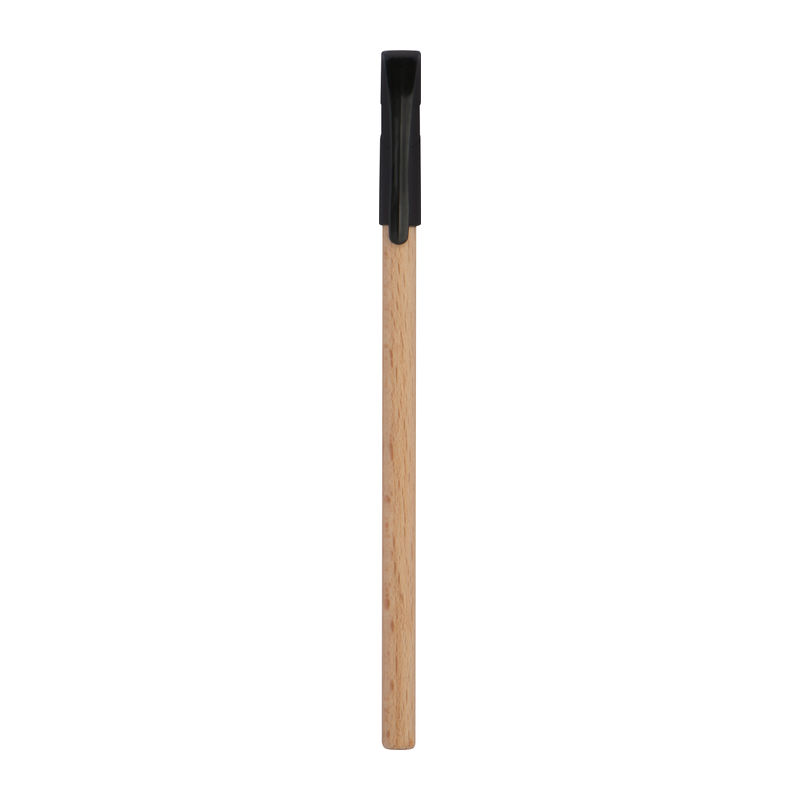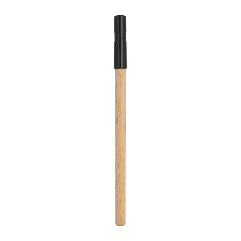 Εργονομικό μαύρο στυλό γραφής από ξύλο με μαύρο πλαστικό καπάκι.