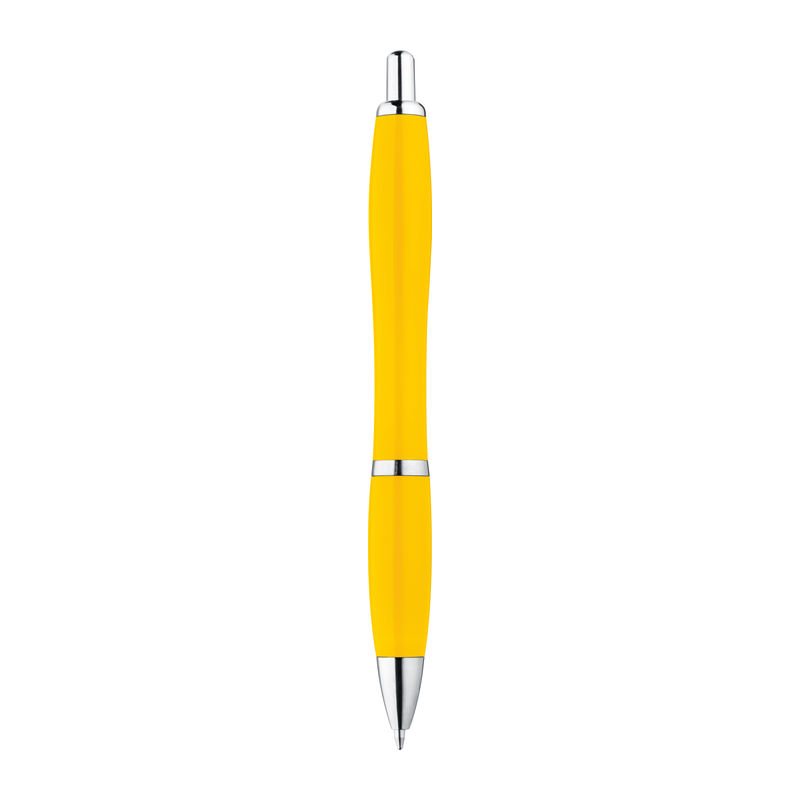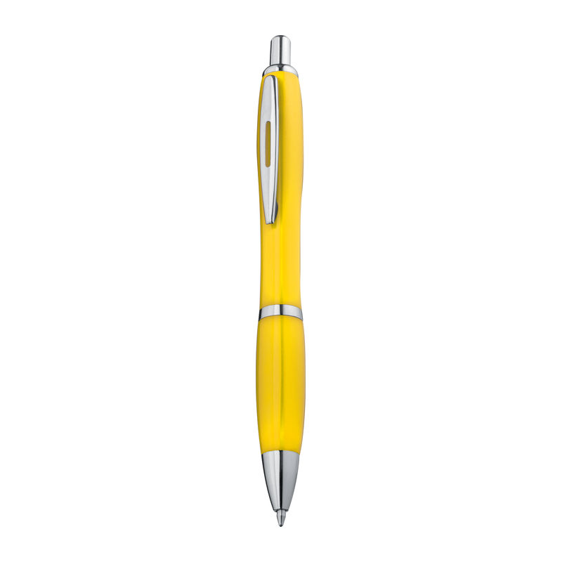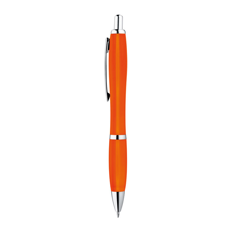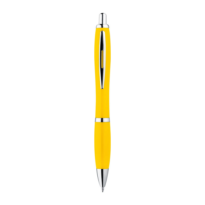 Το κλασικό στυλό σε πολύχρωμη έκδοση, κατασκευασμένο από πλαστικό με μεταλλικό κλιπ και μεγάλο ανταλλακτικό με μελάνι μπλε χρώματος.