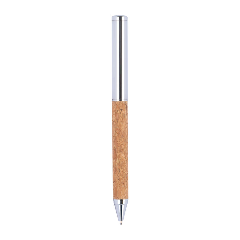 Υψηλής ποιότητας μεταλλικό στυλό με μπίλια και μηχανισμό περιστροφής, επενδεδυμένο με φελλό.