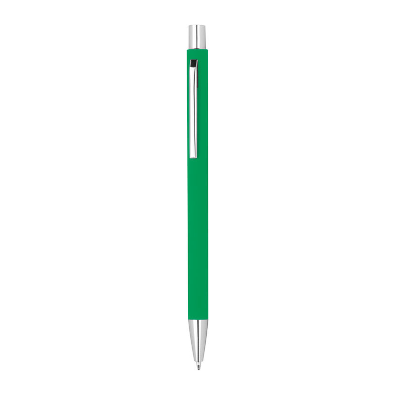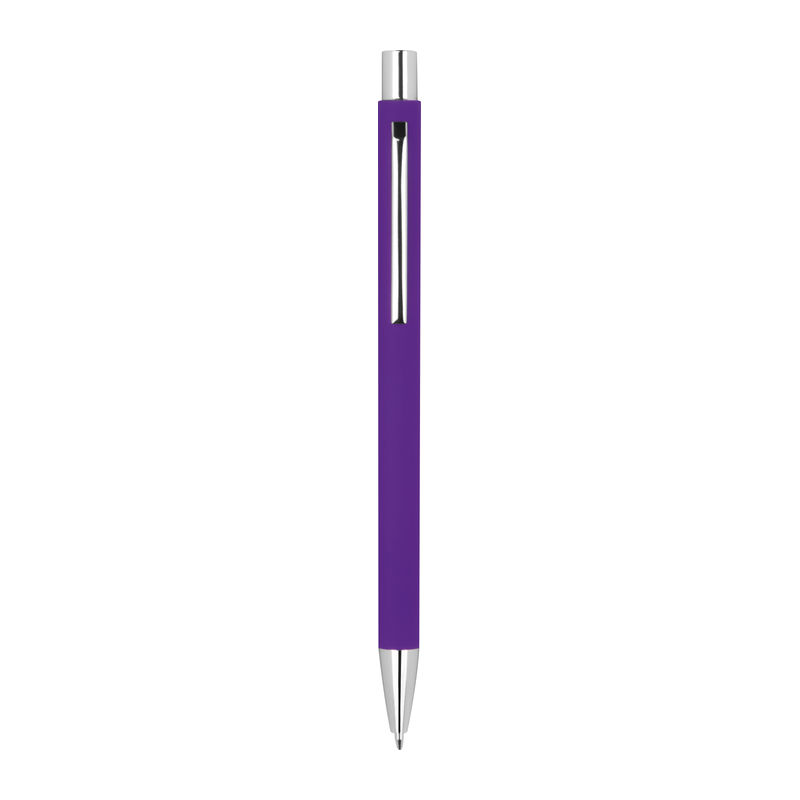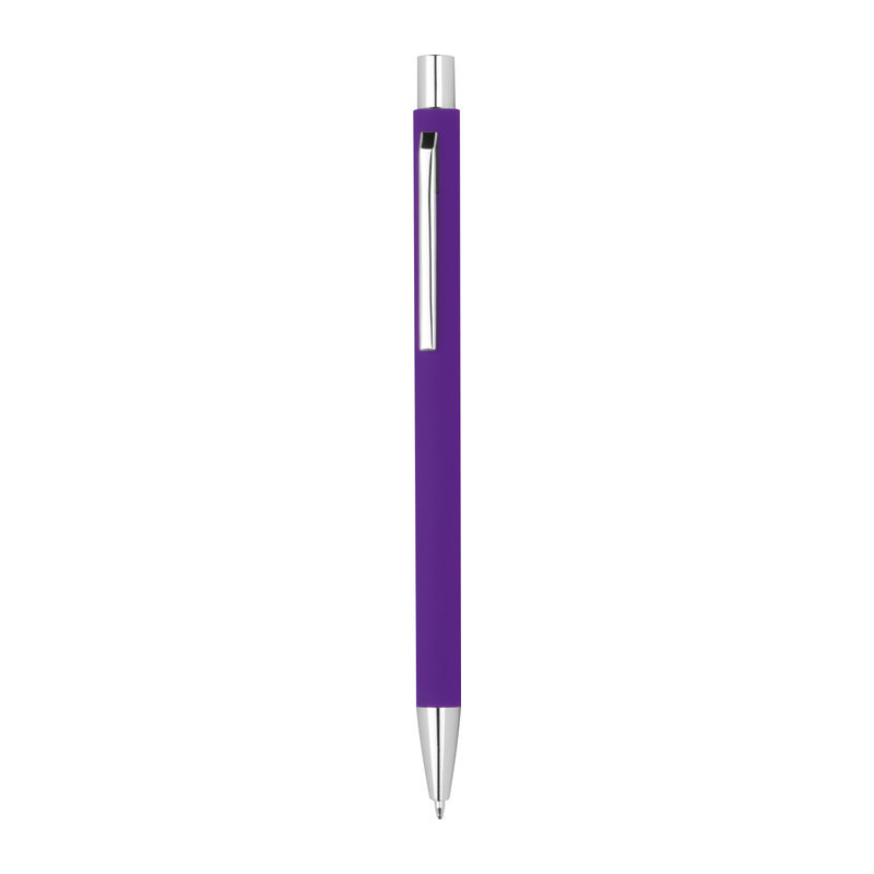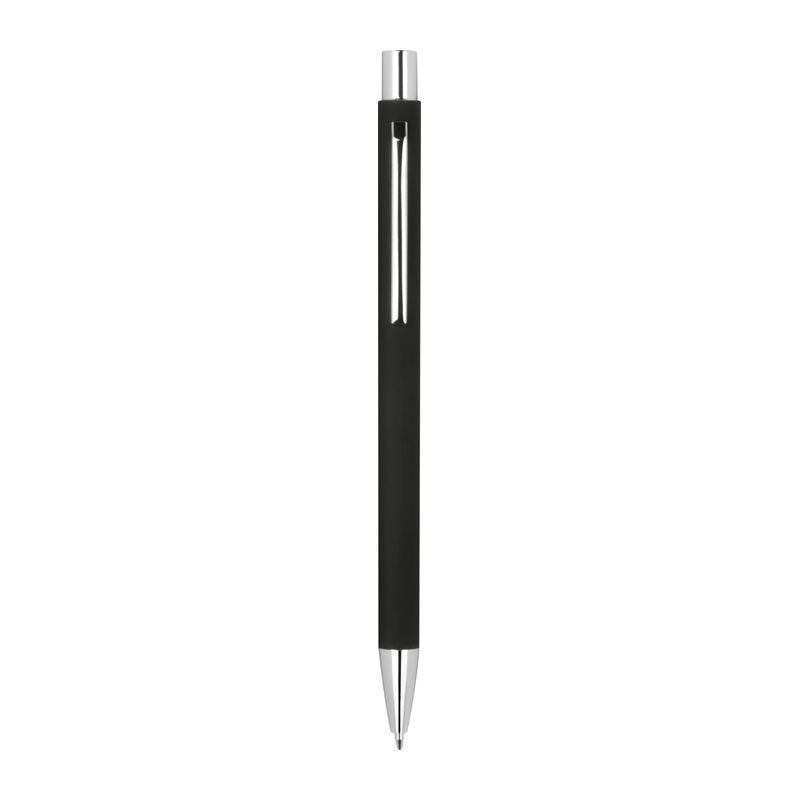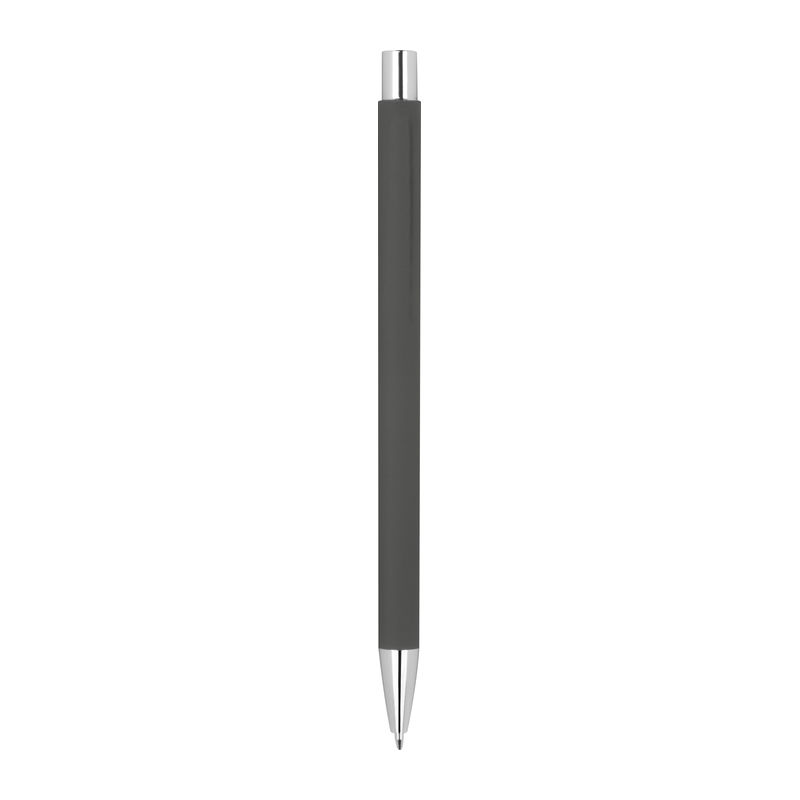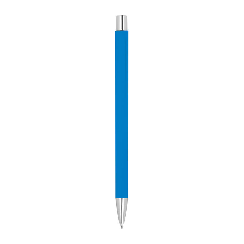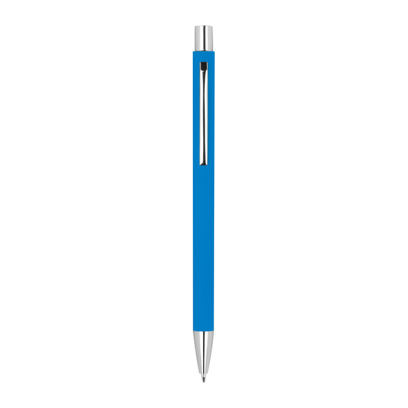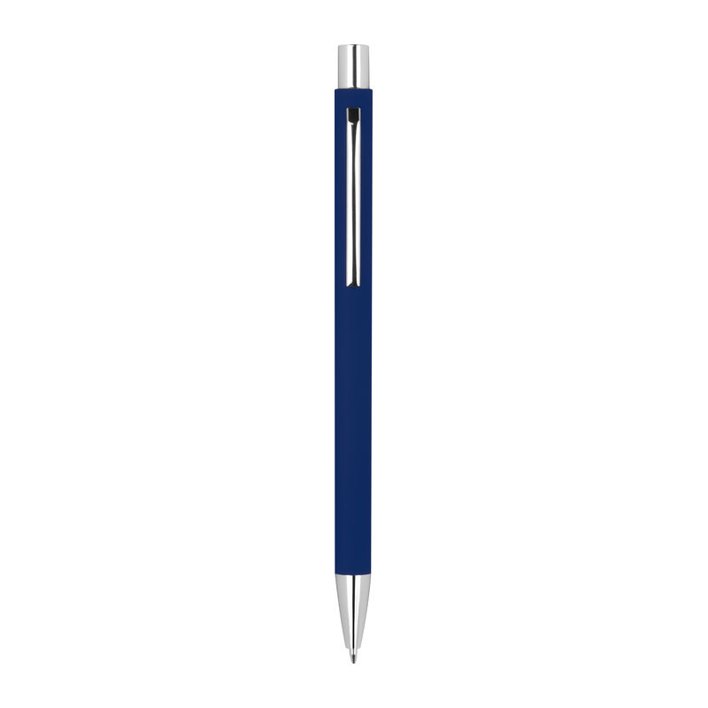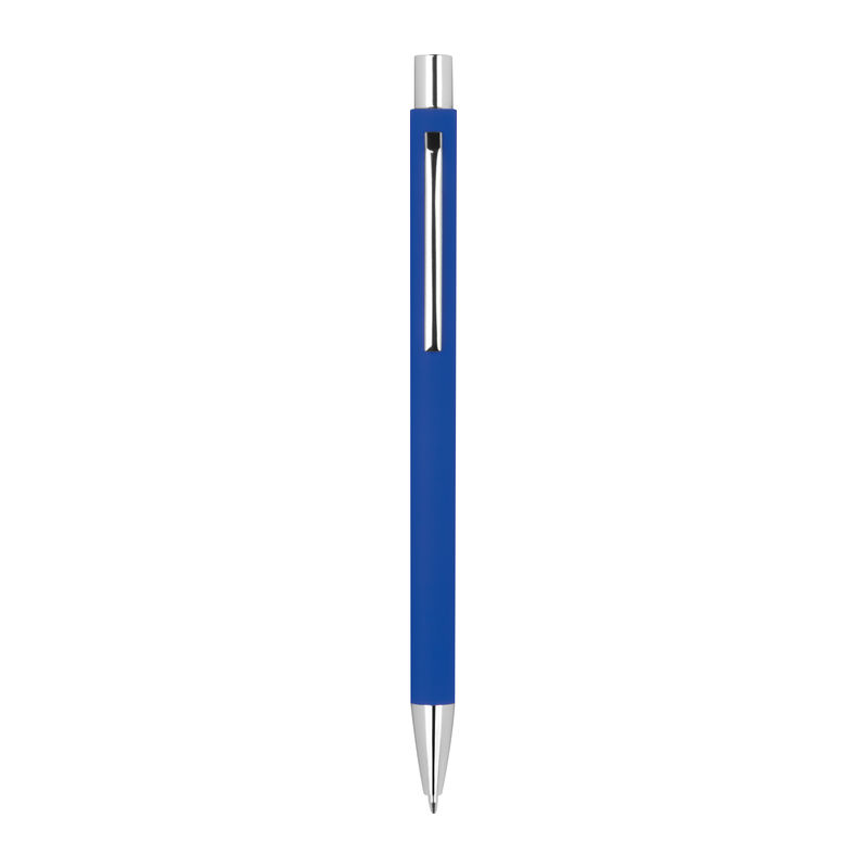 Λεπτό μεταλλικό στυλό με μπίλια και μηχανισμό αναδίπλωσης, με ασημένιες λεπτομέρειες με ανταλλακτικό μπλε μελάνι.