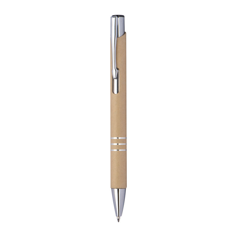Στυλό με μπίλια κατασκευασμένο από ανακυκλωμένο χαρτί, με τρεις διακοσμητικούς δακτυλίους και ανταλλακτικό μεγάλης χωρητικότητας με μπλε μελάνι.