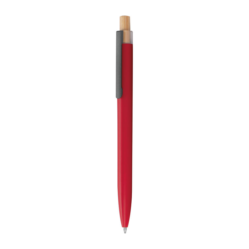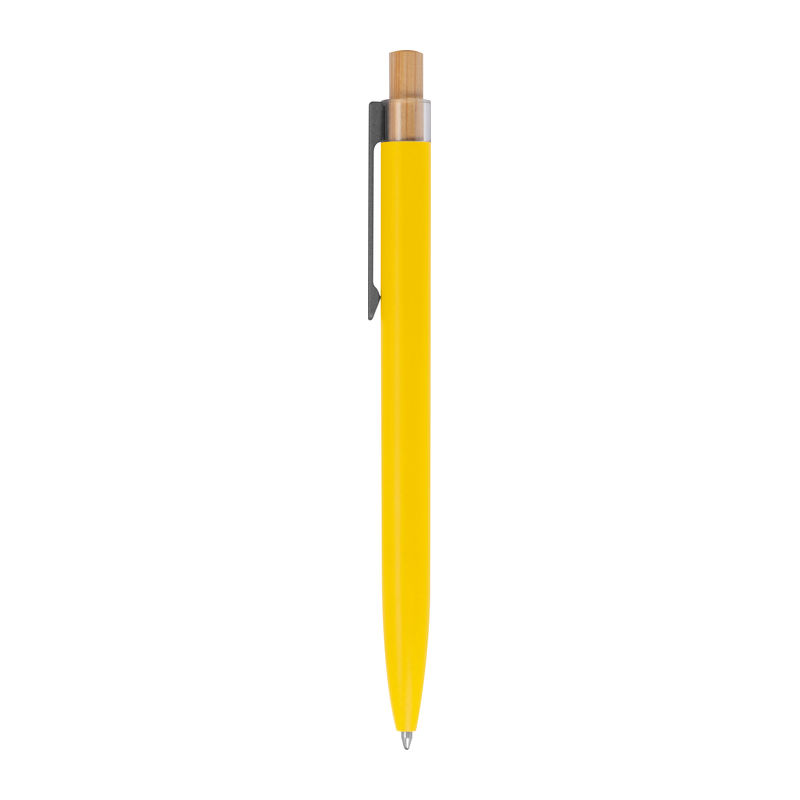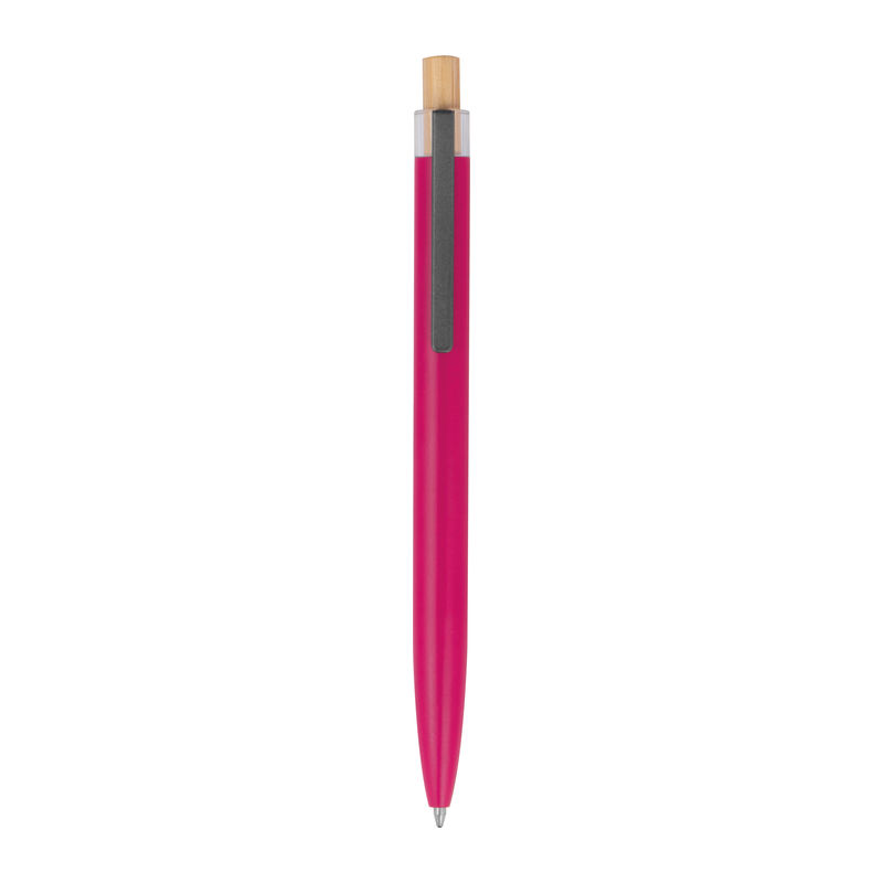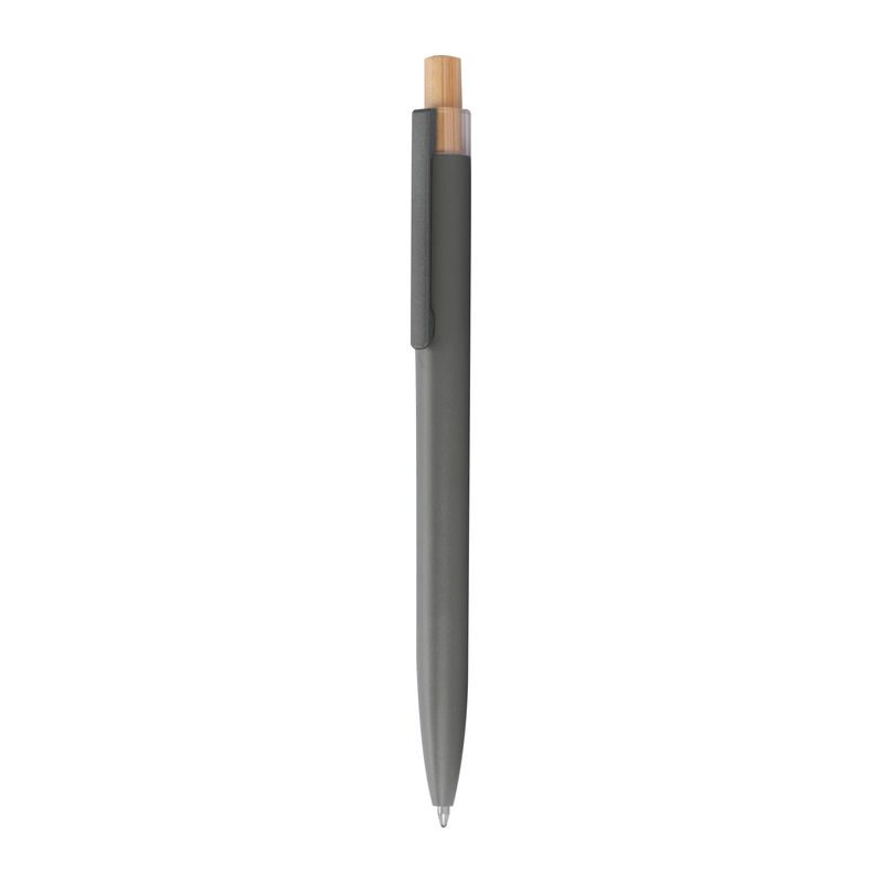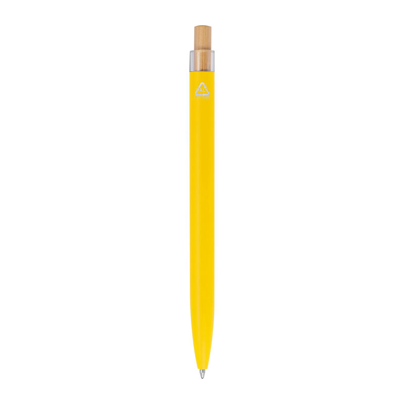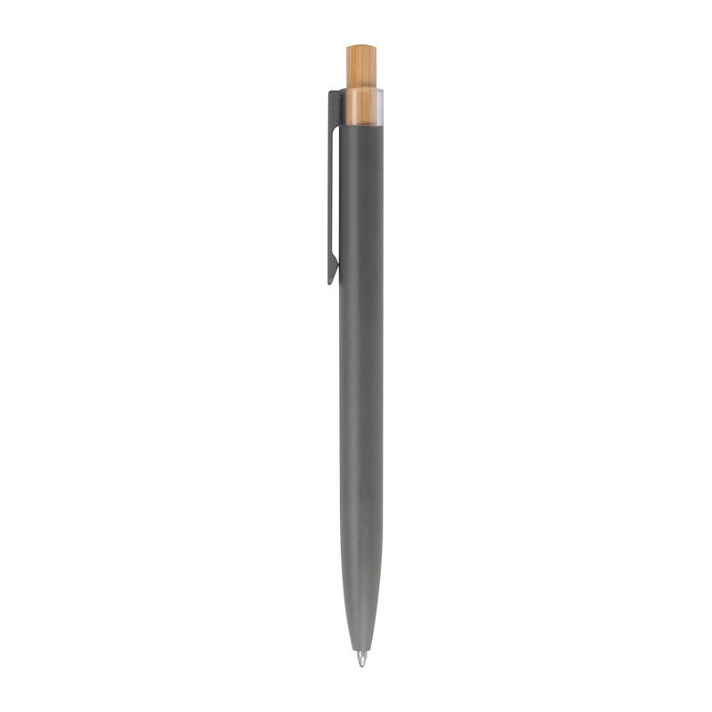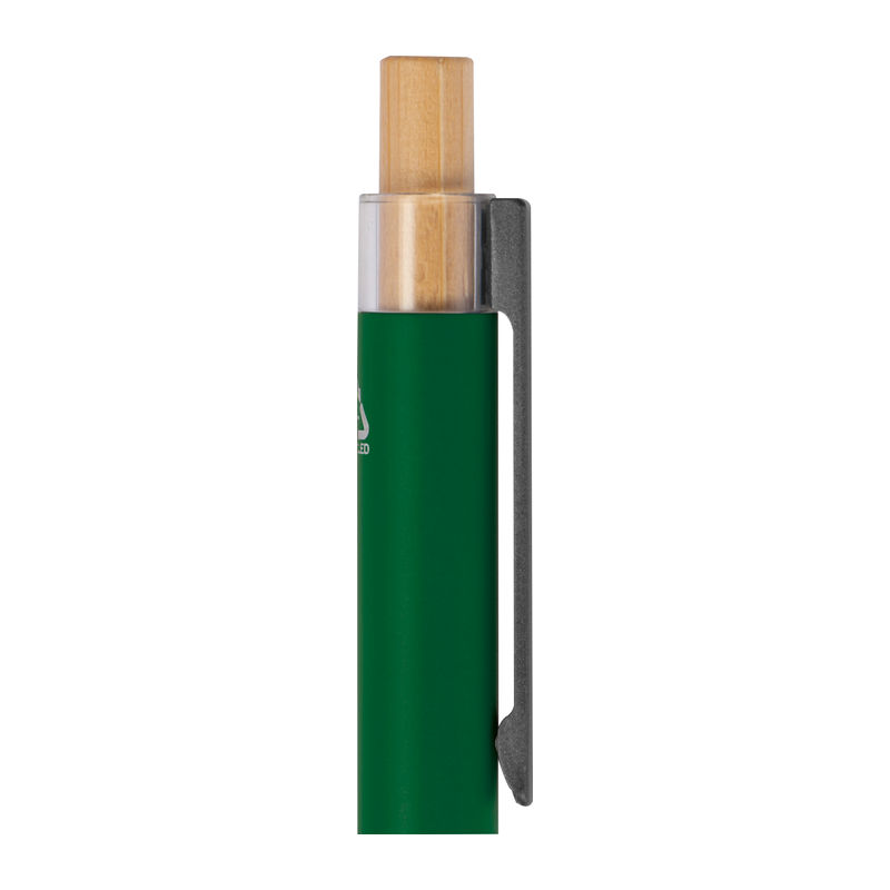 Στυλό με μπίλια κατασκευασμένο από ανακυκλωμένο αλουμίνιο, με μεταλλικό κλιπ, μπλε ανταλλακτικό και μηχανισμό πίεσης από μπαμπού.