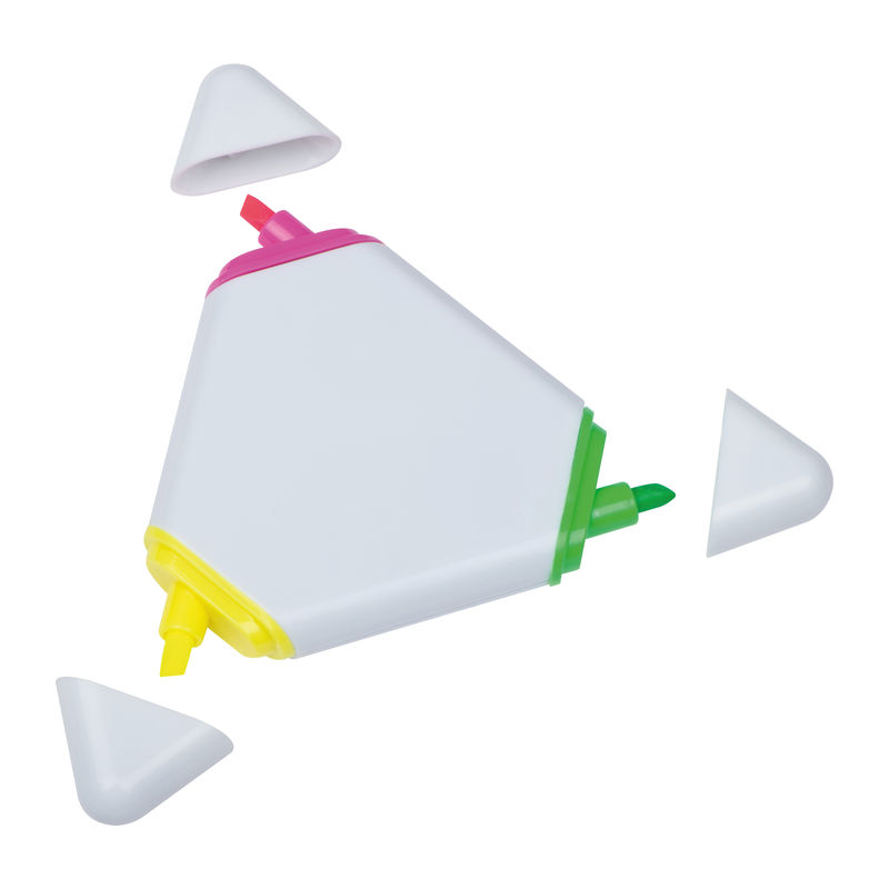 Τρίγωνο highlighter κατασκευασμένο από ανακυκλωμένο πλαστικό σε χρώματα κίτρινο, πράσινο και ροζ.