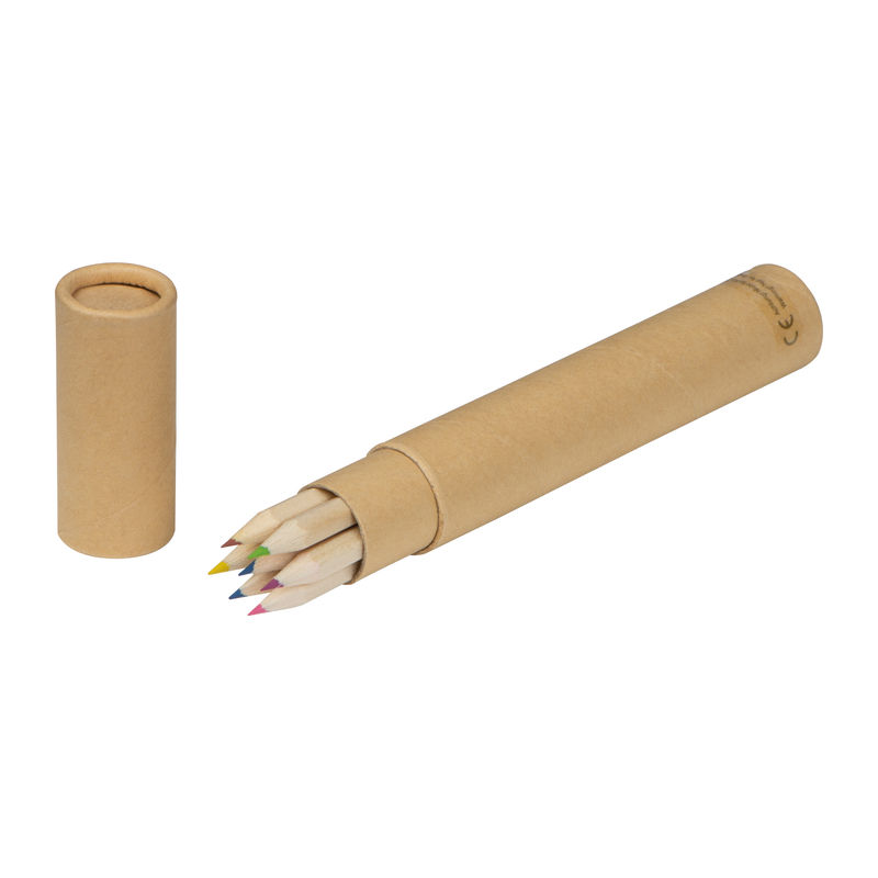 7 μακριά ξύλινα χρωματιστά μολύβια σε στρογγυλή θήκη από χαρτόνι.