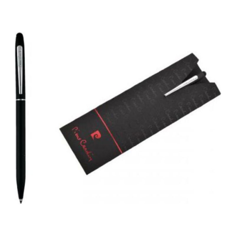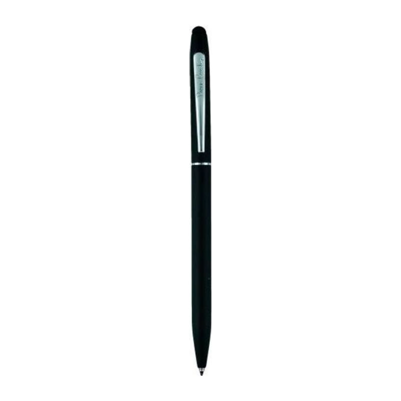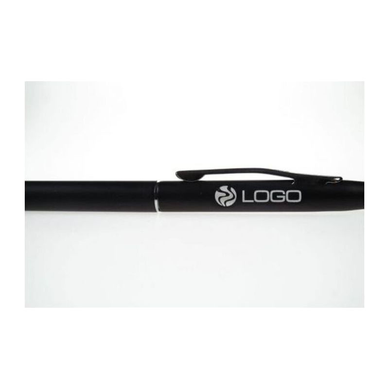 Στυλό με μπίλια που διαθέτει επιμηκυμένη ασημένια λαβή, μαύρο σώμα με ασημένιο κλιπ και περιστροφικό μηχανισμό.