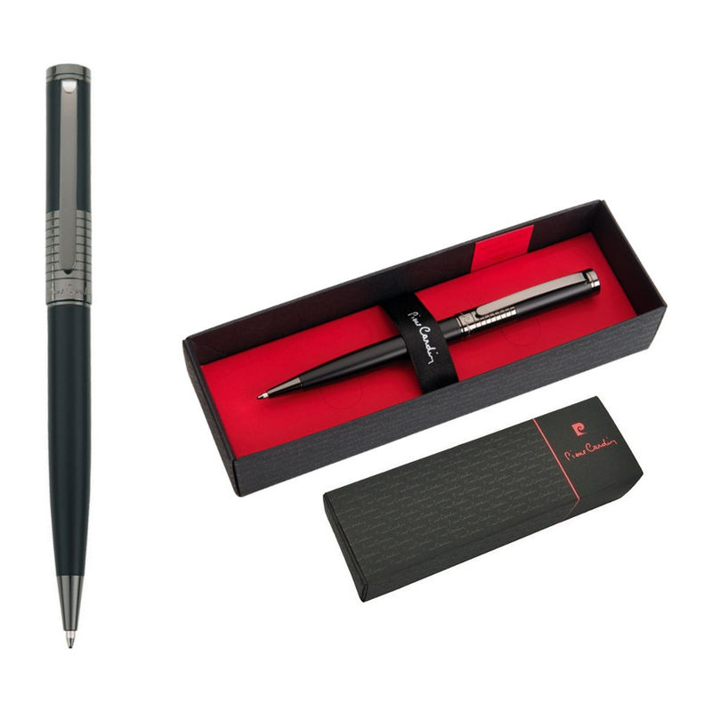 Το πολυτελές μαύρο μεταλλικό στυλό διαρκείας Pierre Cardin διαθέτει εντυπωσιακό σχεδιασμό με κομψή, λεία επιφάνεια, στολισμένη με μια ευφάνταστη χάραξη σε απόχρωση gunmetal τοποθετημένη στην κορυφή του σώματος.