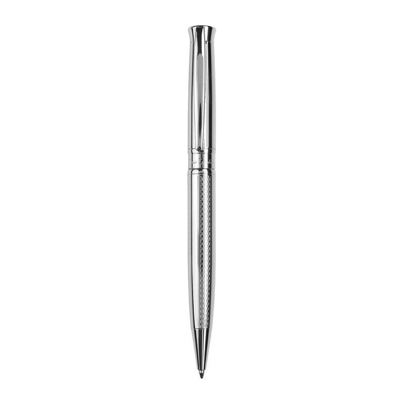 Το στυλό με μύτη διαθέτει εξαιρετικά κομψό σχεδιασμό και λεπτομερή χάραξη σε ολόκληρη την επιφάνεια, μηχανισμό περιστροφής και υψηλής ποιότητας ανταλλακτικό με μπλε μελάνι και μύτη 1 mm.