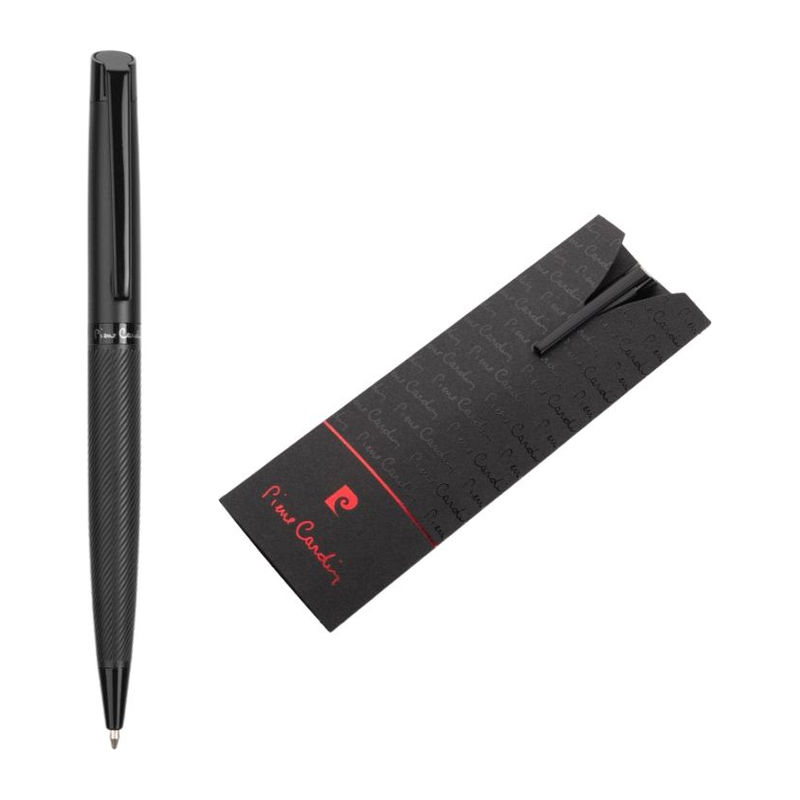 Ένα κομψό μεταλλικό στυλό με μύτη από την Pierre Cardin. Διαθέτει περιστρεφόμενο μηχανισμό και το κάτω μέρος του στυλού είναι διακοσμημένο με δομικό σχέδιο.