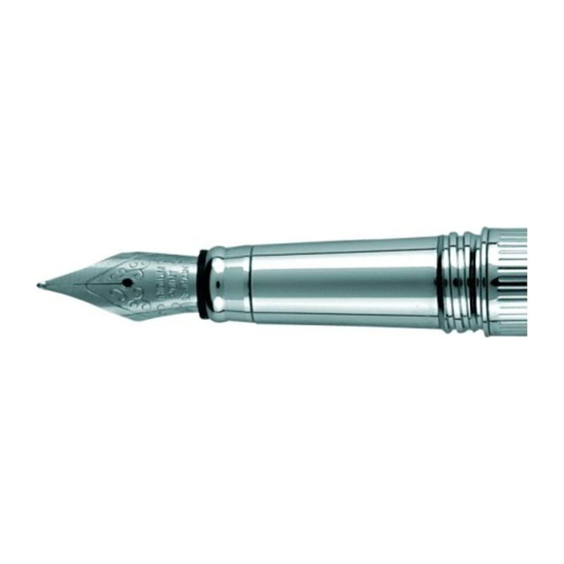 Εξαιρετικός συνδυασμός ασημί και μαύρου χρώματος με λεπτομερή χάραξη στο κάτω μέρος της πένας.