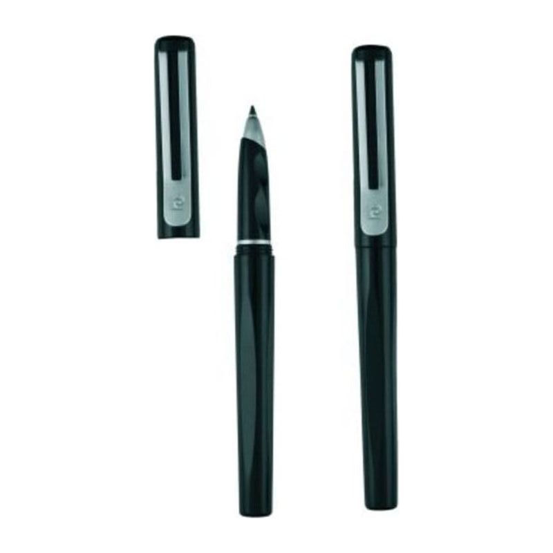 Πλαστικό στυλό roller και μεταλλικό κλιπ. Διαθέτει εργονομική λαβή για άνετη γραφή και βιδωτό καπάκι που προστατεύει τη μύτη. Περιλαμβάνει μπλε ανταλλακτικό.