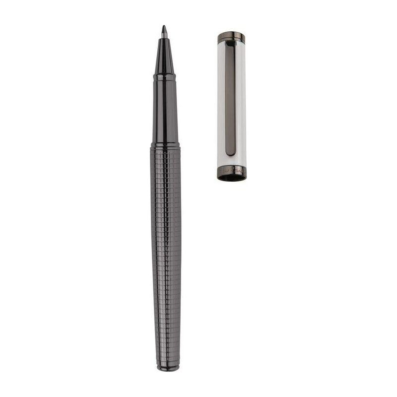 Το κάτω μέρος του σώματος είναι διακοσμημένο με πολυτελές χάραγμα σε απόχρωση gunmetal, ενώ η μύτη του roller προστατεύεται από λευκό καπάκι.