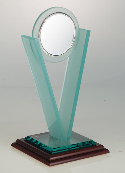 Προϊόν από κρύσταλλο και ξύλο, με δίσκο και δυνατότητα εκτύπωσης ή χάραξης, συμπεριλαμβανομένης στην τιμή.