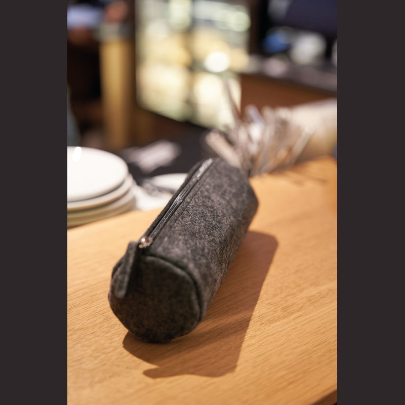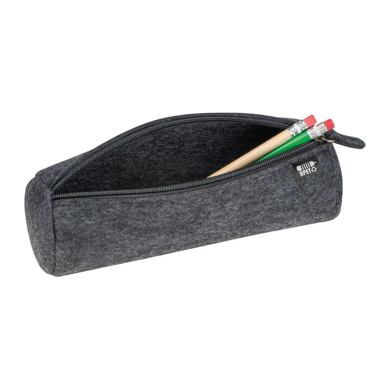 Κασετίνα κατασκευασμένη από τσόχα RPET με φερμουάρ, προσφέρει άφθονο χώρο για πολλά είδη γραφικής ύλης. Θα τυπώσουμε το λογότυπό σας πάνω στην κασετίνα.