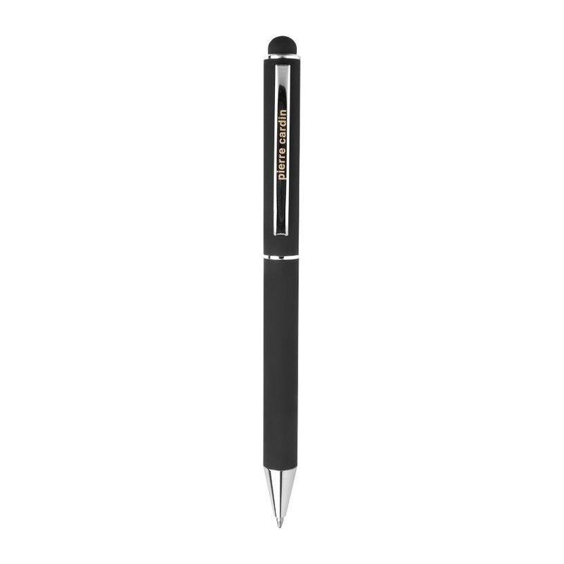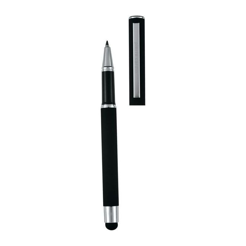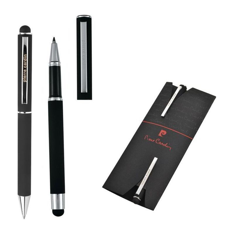 Πολυτελές σετ με roller και στυλό διαρκείας Pierre Cardin, με αλουμινένιο σώμα και επιφάνεια από καουτσούκ σε μαύρο χρώμα.