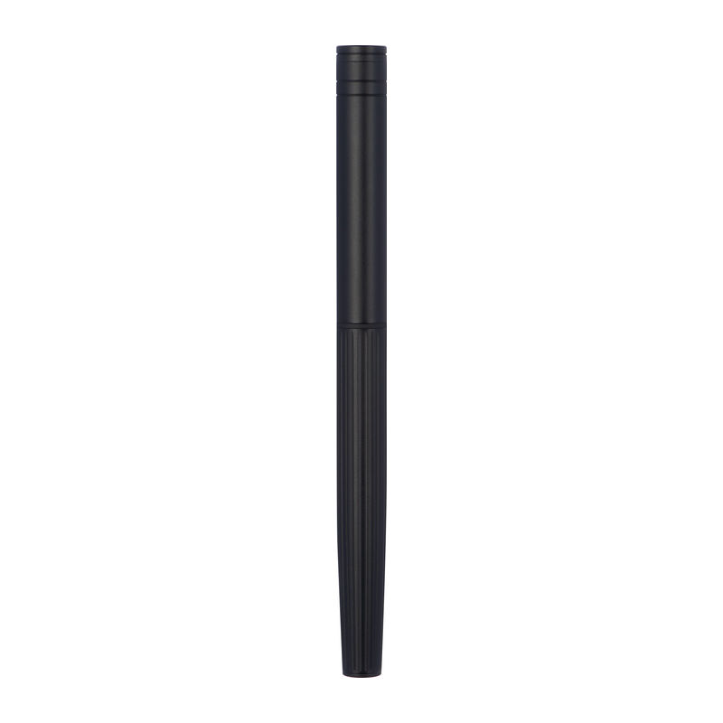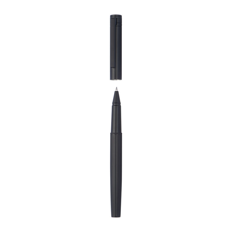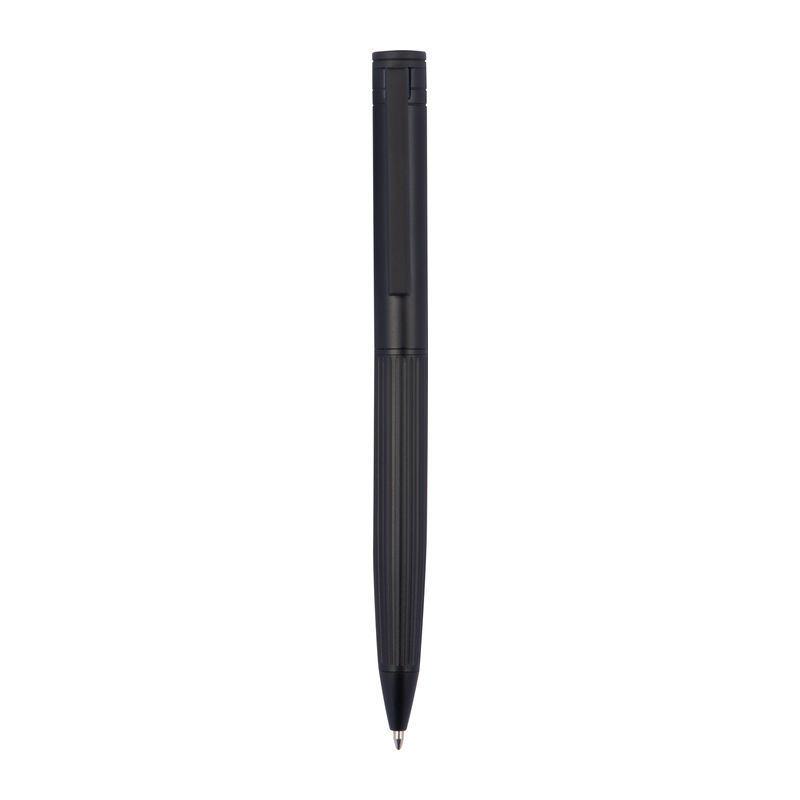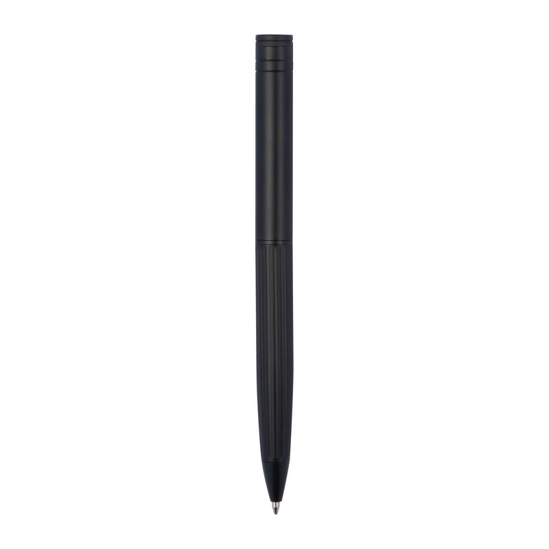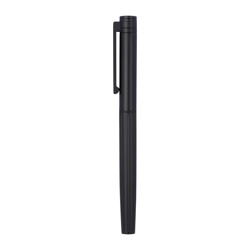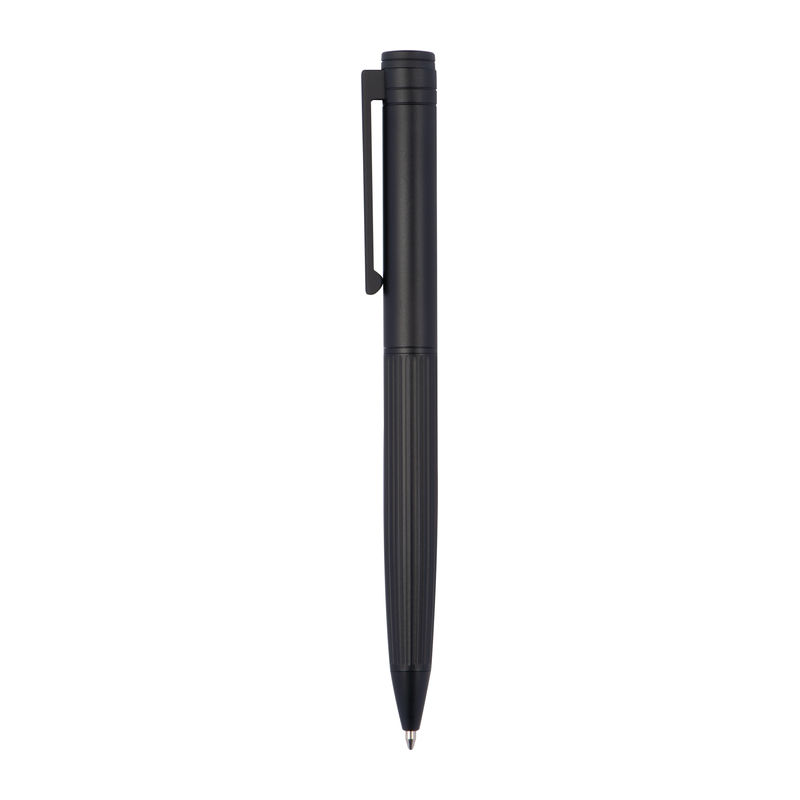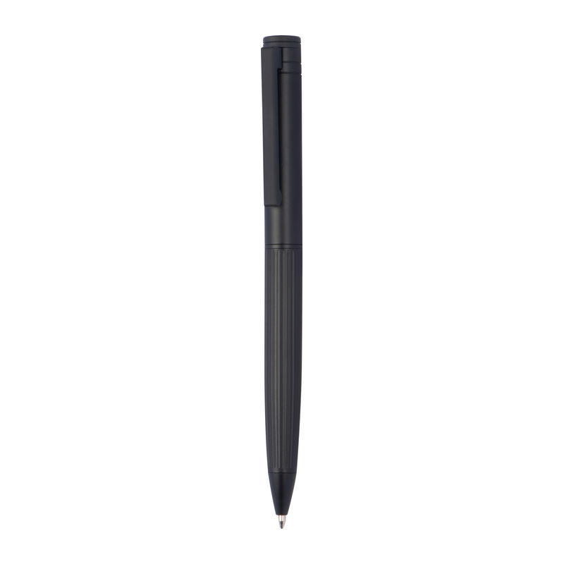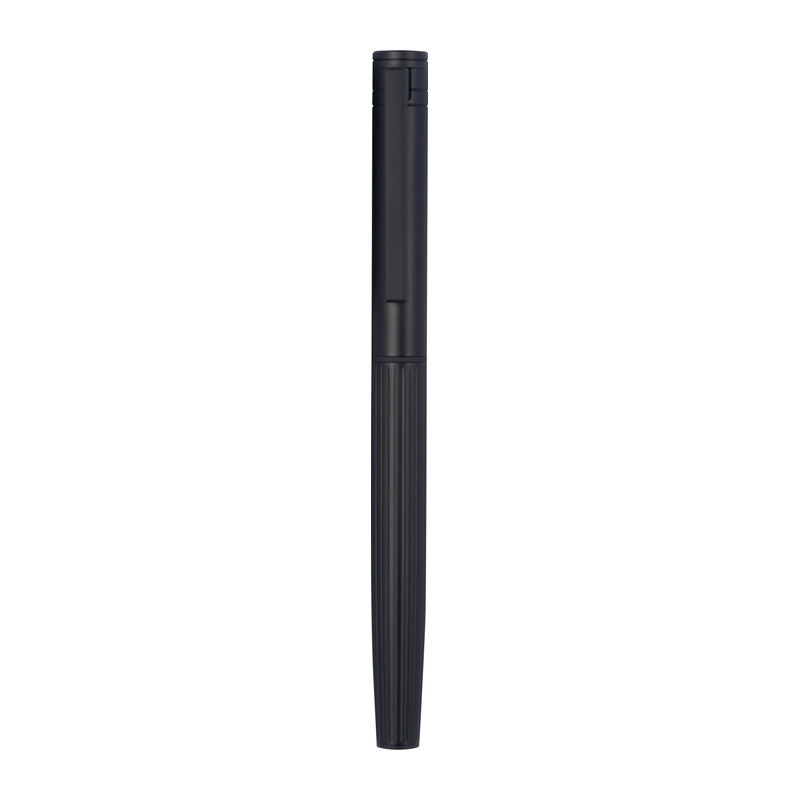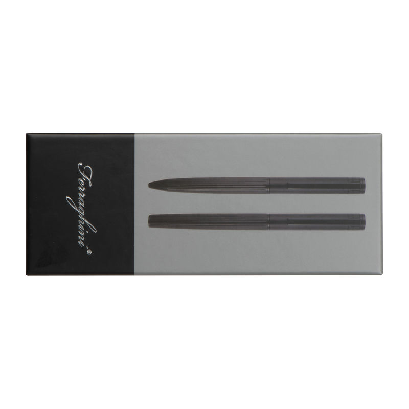 Σετ γραφής Ferraghini που περιλαμβάνει ένα στυλό και ένα rollerball (με μελάνι μπλε χρώματος), κατασκευασμένα από μέταλλο με ραβδωτή επιφάνεια.